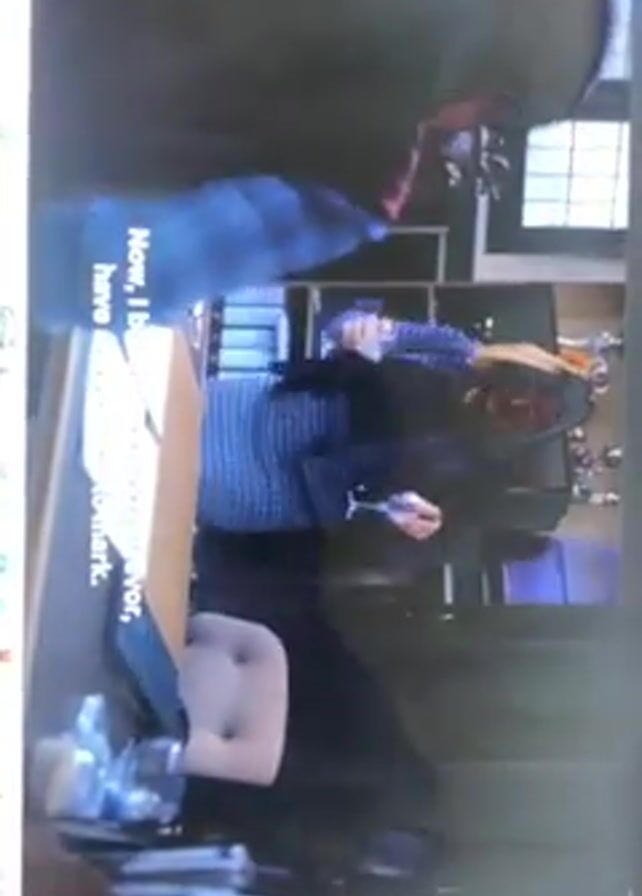 A video shows two people inside what appears to be an office or study