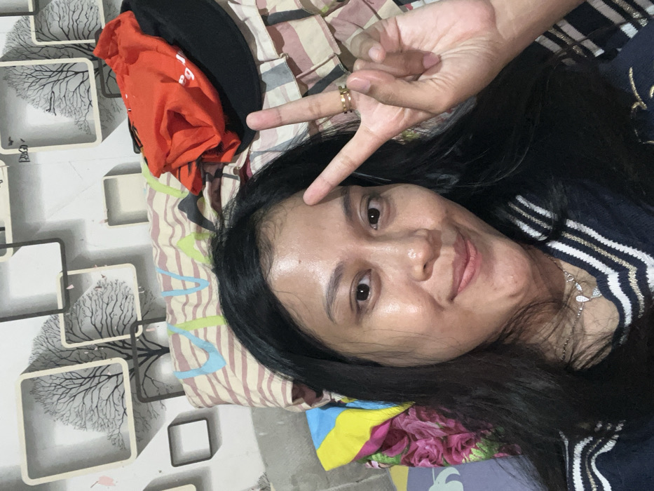 A female individual is depicted in a close-up selfie-style photograph taken indoors in Wedarijaksa, Indonesia