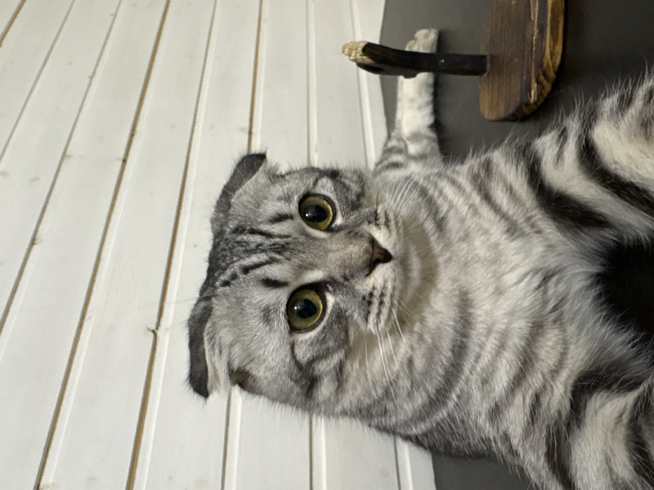 - "A silver-grey tabby Scottish Fold cat is centrally positioned in an indoor setting in Perm, Russia" by FM-xlahD2, licensed under CC BY 4.0