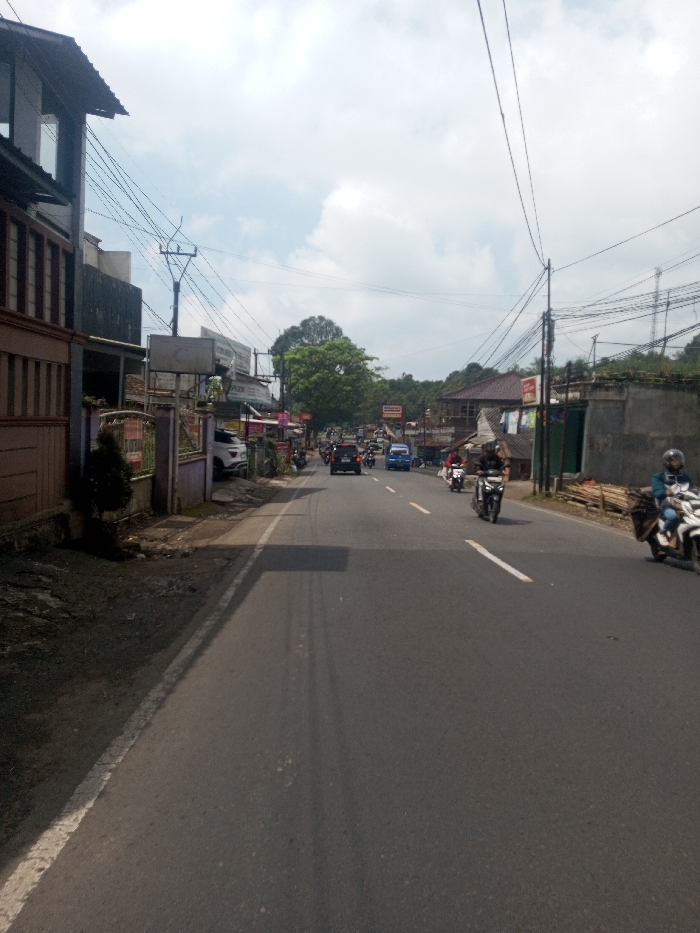 The image displays an active two-lane asphalt road in Niz Lakuk, India, under a bright, overcast sky