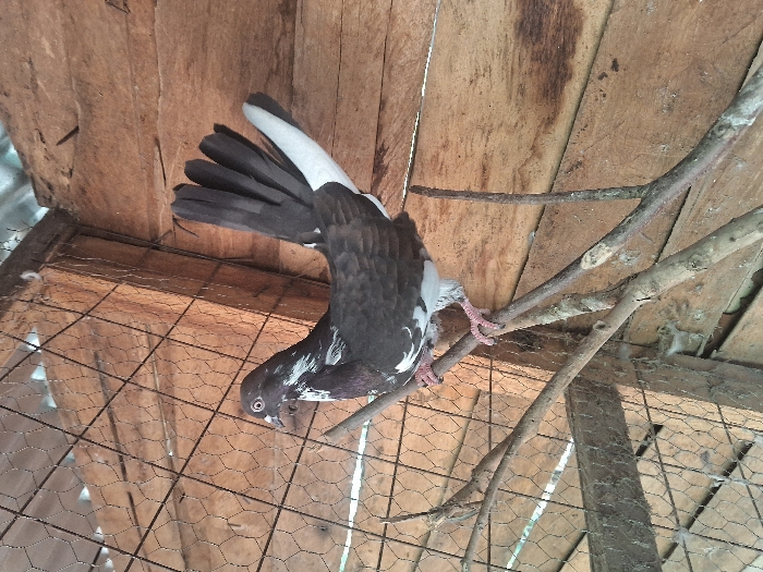 - "A single pigeon is depicted perched on a natural tree branch within an enclosure in Muthambi ward, Kenya" by FM-UrRWw2, licensed under CC BY 4.0