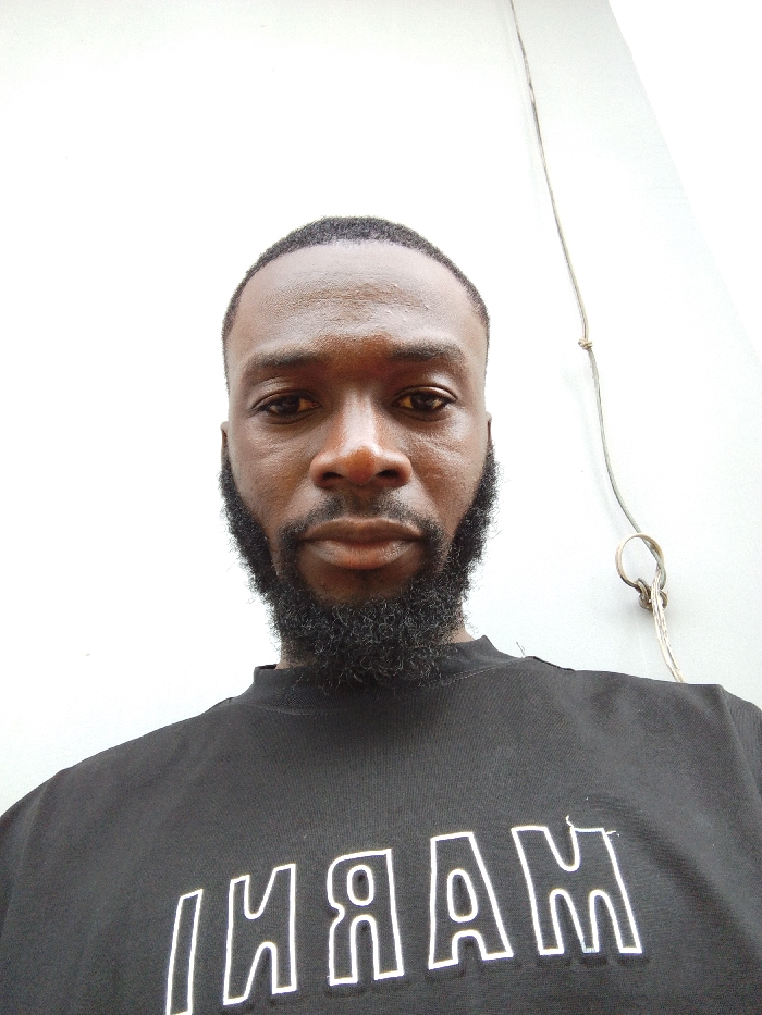 - "An upward-angled, close-up photograph depicts one adult male with dark skin, a short haircut, and a full dark beard, looking directly into the camera" by FM-M1pKt1, licensed under CC BY 4.0