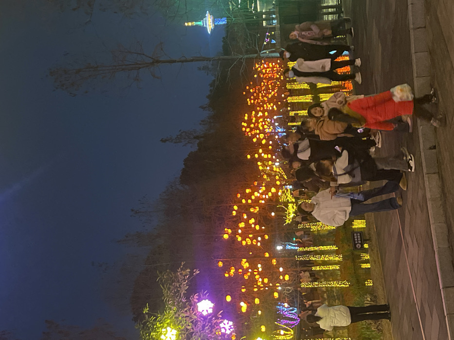 This nighttime image depicts a public park in Bishan, Chongqing, China, heavily adorned with festive illumination