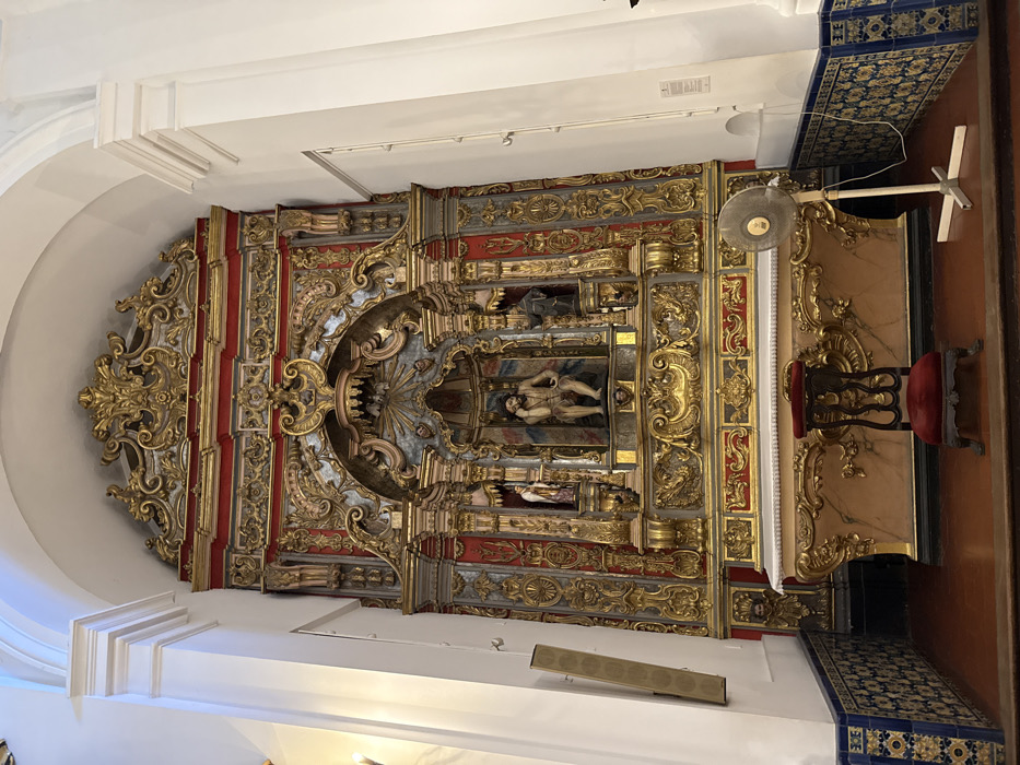 Ornately decorated altar displaying religious figures and gold accents