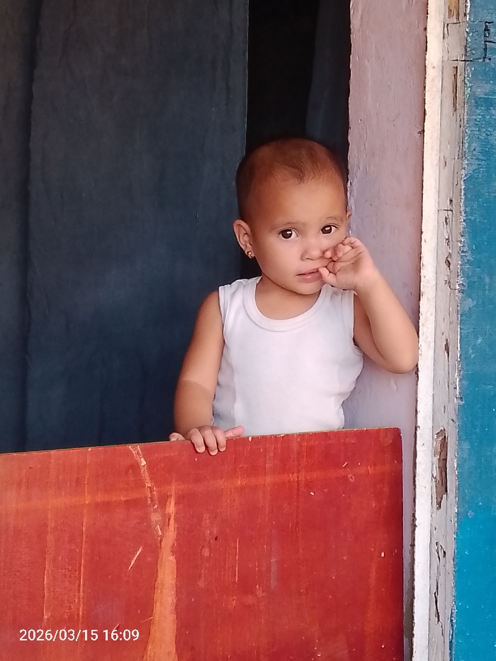 - "This image, captured in Las Tejerías, Venezuela, on 2026/03/15 at 16:09, depicts a young child looking directly forward from behind a reddish-brown wooden barrier" by FM-M1WVk1, licensed under CC BY 4.0