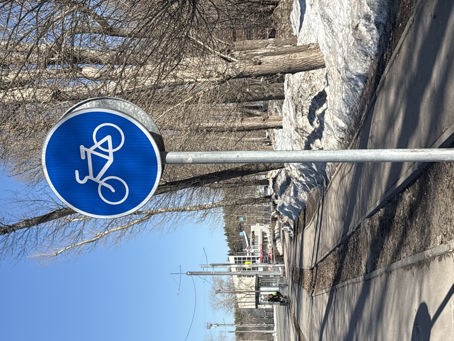- "A blue circular road sign depicting a white bicycle symbol, indicating a mandatory cycle path, stands centrally on a gray metallic pole" by FM-2iDiG2, licensed under CC BY 4.0