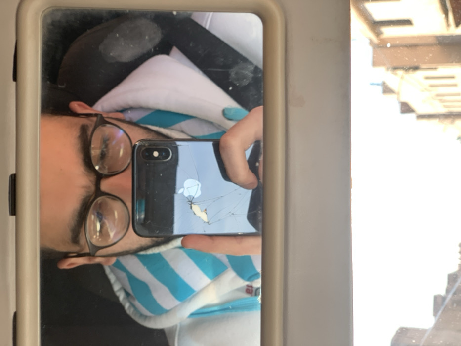 - "The image presents a close-up reflection of a male individual in a vehicle's overhead vanity mirror" by FM-5gXC02, licensed under CC BY 4.0