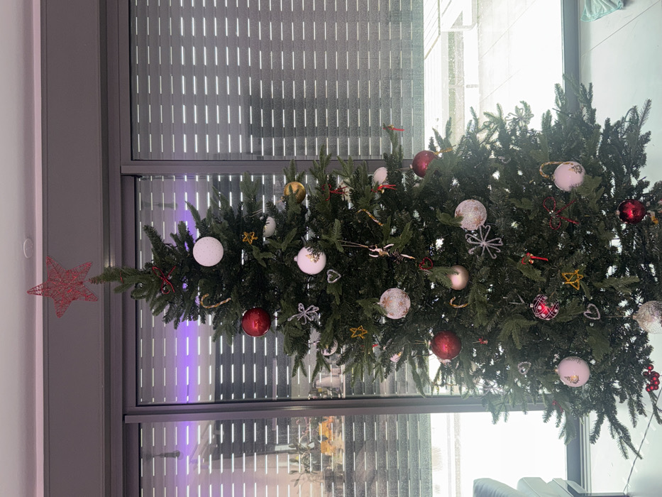 - "An artificial green Christmas tree stands centrally indoors in Ariel, Palestinian Territory" by FM-v1KIi2, licensed under CC BY 4.0