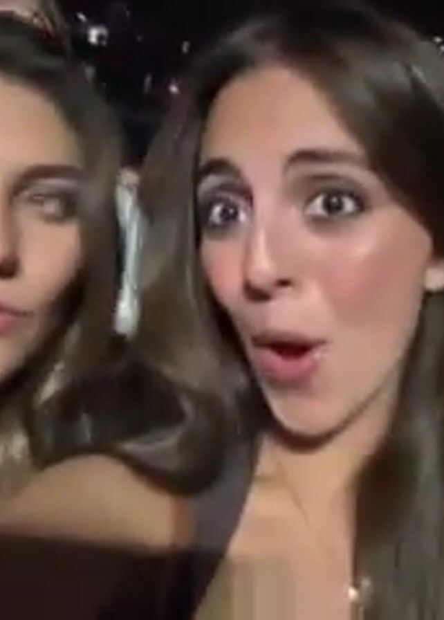 Two young women are at a concert or event, excitedly recording themselves