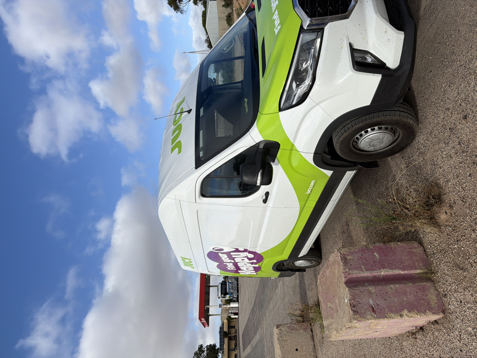 - "The image depicts a white commercial van, identifiable as a "JUCY" rental vehicle, parked on a gravel and dirt surface at a roadside location in Penong, Australia" by FM-JANnY2, licensed under CC BY 4.0