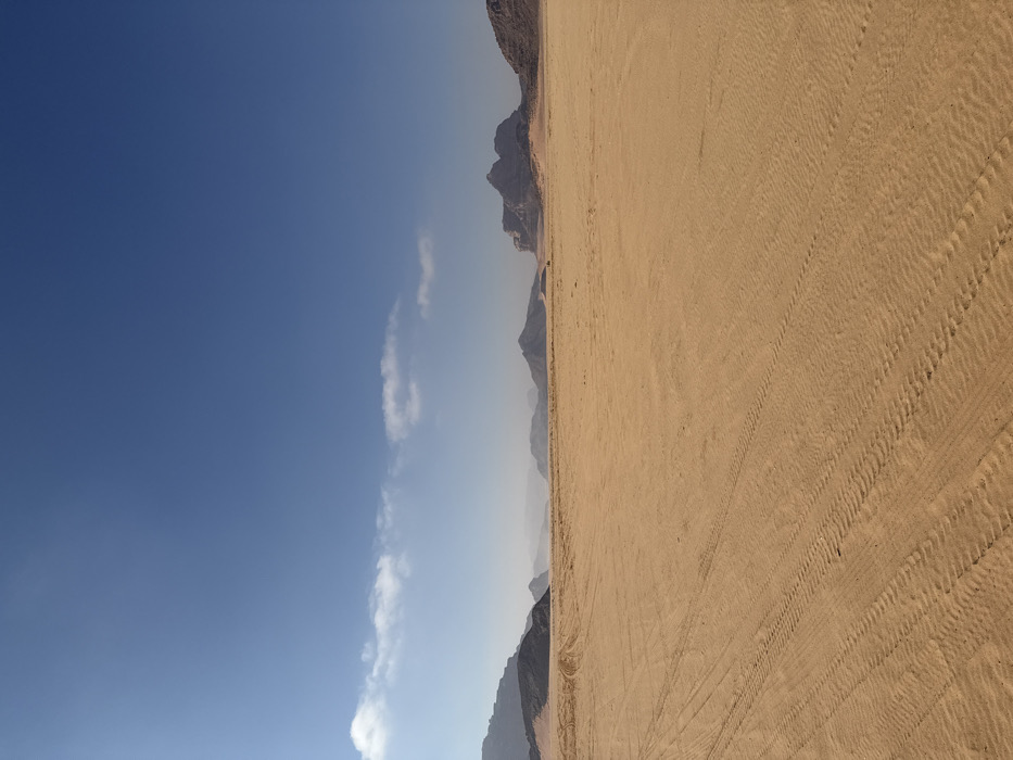 - "The image displays a vast, uninhabited desert landscape in Shakaria, Jordan, under a clear blue sky with scattered wisps of white clouds" by FM-E8HK12, licensed under CC BY 4.0