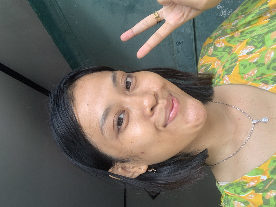 A medium close-up portrait of an adult female is presented, originating from Kecamatan Pati, Indonesia