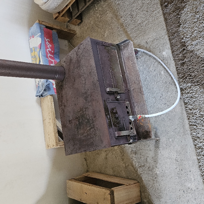 - "An interior photograph taken in the city of Buriani, Georgia, depicts a rustic room dominated by a dark, rectangular metal wood-burning stove exhibiting surface rust, situated on a concrete floor" by FM-oPbvC2, licensed under CC BY 4.0