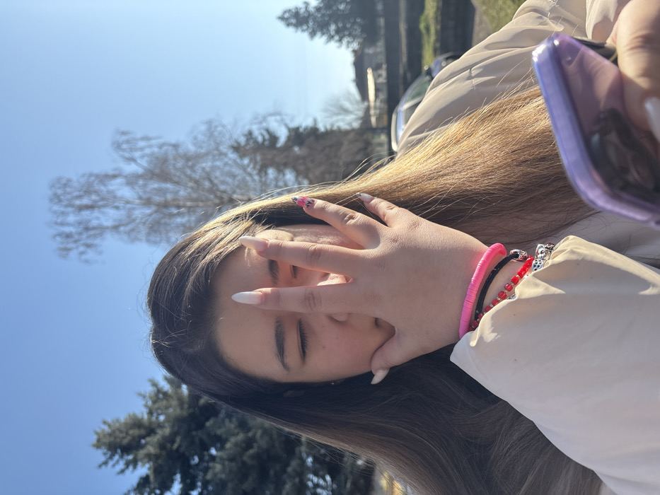 - "An outdoor, eye-level photograph captured in Cherven Bryag, Bulgaria, depicts a young female partially obscuring her face with her left hand against a bright, clear sky" by FM-r999O2, licensed under CC BY 4.0