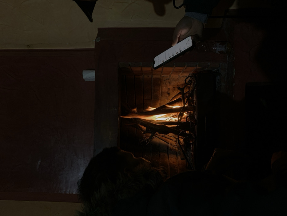 - "A person holds a lit smartphone over a burning fire in a brick fireplace" by FM-5gXC02, licensed under CC BY 4.0