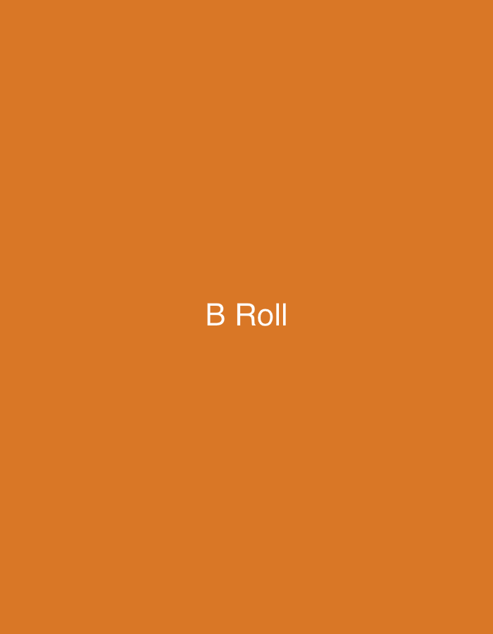 The image displays a solid orange background. Centered horizontally and slightly below the vertical midpoint, the white sans-serif text "B Roll" is present. There are no discernible people, physical subjects, objects, actions, or interactions depicted. The visual content provides no information to establish a specific physical environment or location, including the city of Kunje, Montenegro.