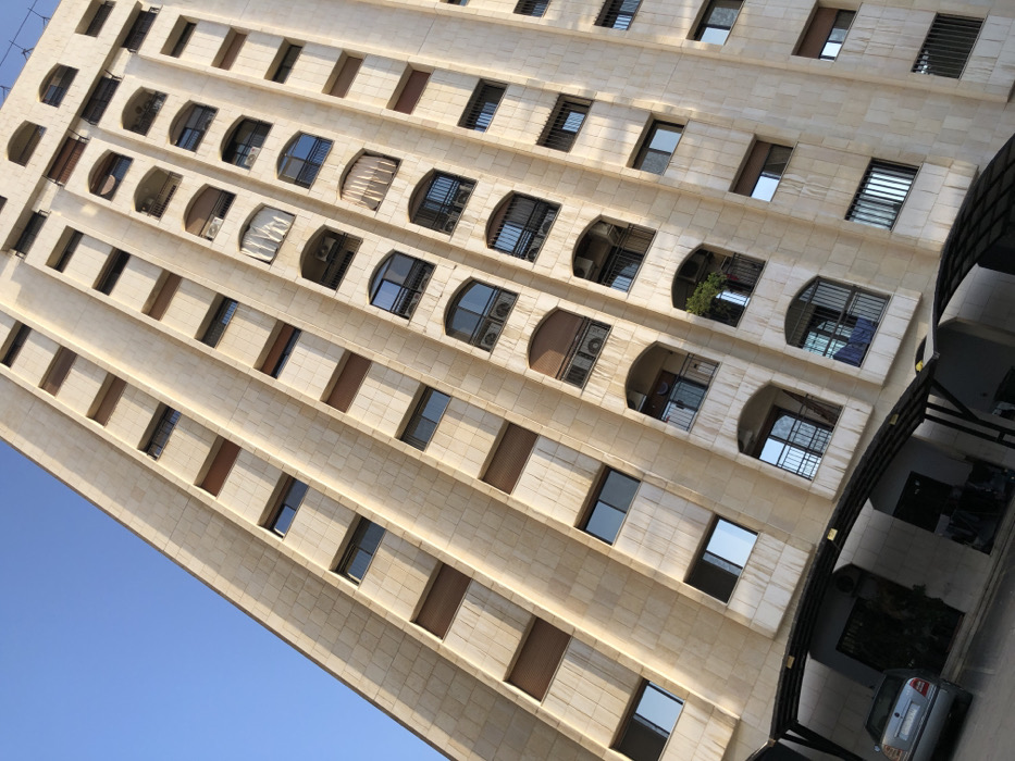 - "The image presents a tall, multi-story residential building situated in Kafr Sousa Municipality, Syria, viewed from a low, upward-angled perspective" by FM-K8Oim1, licensed under CC BY 4.0
