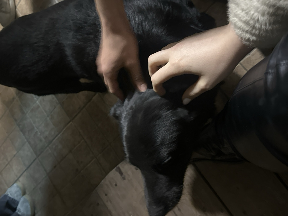 - "The scene depicts a black dog being petted by two individuals on a tiled floor in Horezu, Romania" by FM-RIcHm1, licensed under CC BY 4.0