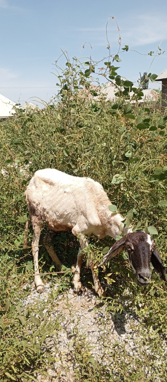 - "A single domestic sheep stands amidst dense green foliage on light-colored ground under a clear blue sky in Kakau, Nigeria" by FM-9pOP92, licensed under CC BY 4.0