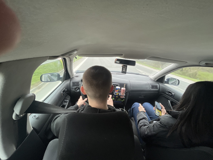 - "The image depicts the interior of a vehicle, viewed from a rear passenger seat, in motion on a road in Zagore, Bulgaria" by FM-20PDi2, licensed under CC BY 4.0