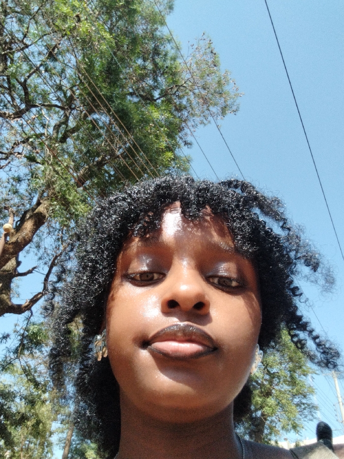 - "A low-angle selfie captured in Thika, Kenya, features a female individual with dark skin and dark, curly hair styled with bangs" by FM-ceYJN2, licensed under CC BY 4.0