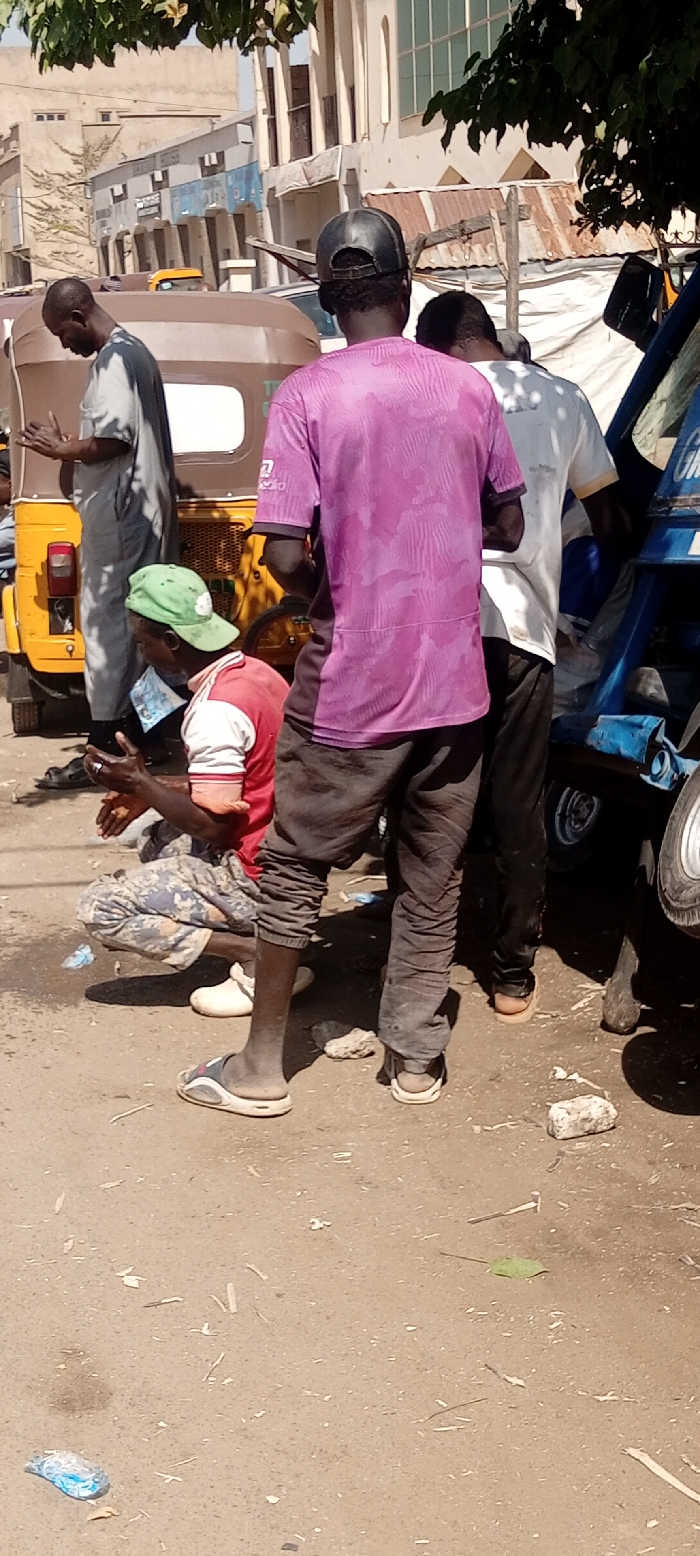 This image depicts an outdoor street scene in Gwale, Nigeria, under bright daylight