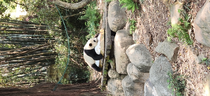 - "The image depicts a giant panda resting within an outdoor enclosure, specifically located in Panyu District, China, consistent with a facility such as Chimelong Safari Park" by FM-ldcHA2, licensed under CC BY 4.0