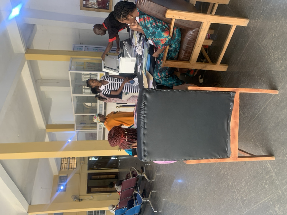 An indoor scene in Osu, Nigeria, depicts a public service or administrative reception area