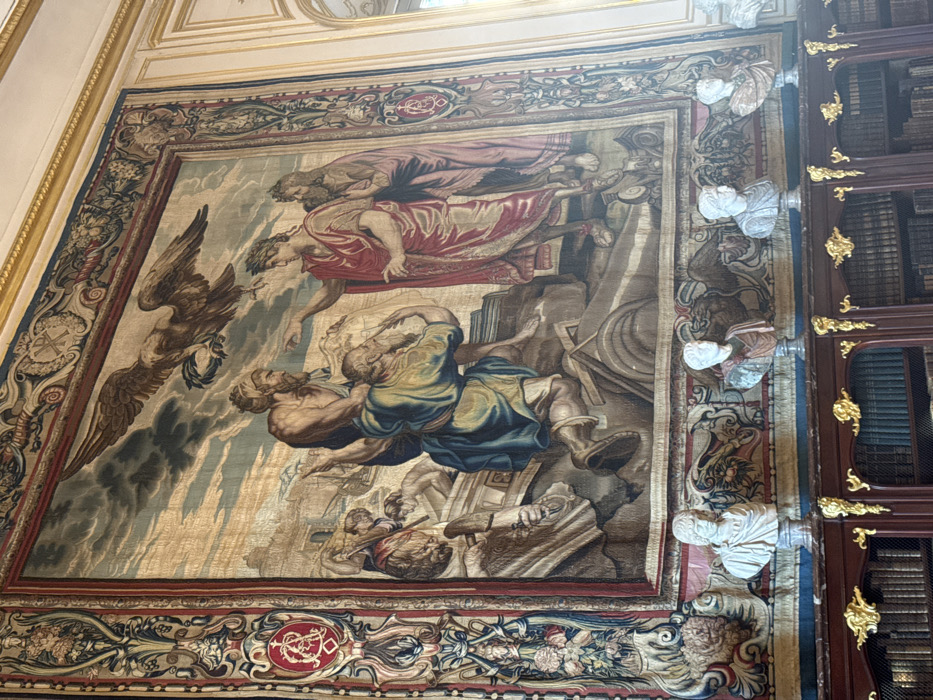 - "The image displays a large, elaborate tapestry mounted on a wall within a grand room, identifiable as a historic interior, specifically the Palais Rohan in Strasbourg, France" by FM-pFdZm2, licensed under CC BY 4.0
