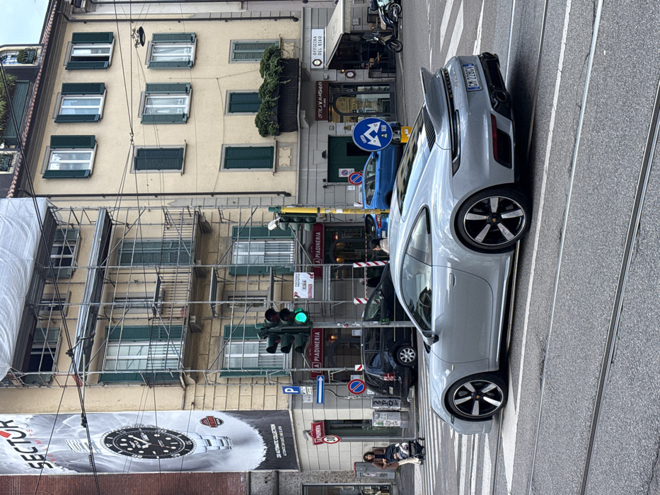 - "An urban street scene in Milan, Italy, captured from a slightly elevated perspective, shows a grey Porsche 911 (992 generation) coupe in the foreground, moving right-to-left across tram tracks" by FM-UaKXZ2, licensed under CC BY 4.0