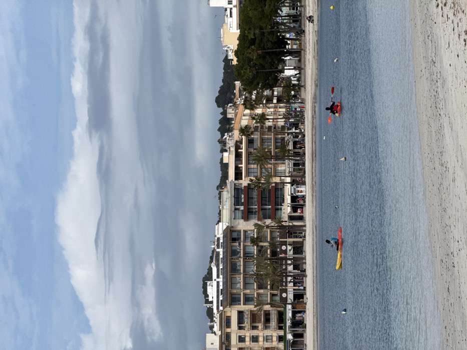- "The image depicts a coastal scene in Alcúdia, Spain, viewed from a sandy beach towards a built-up shoreline on a cloudy day" by FM-5bat93, licensed under CC BY 4.0
