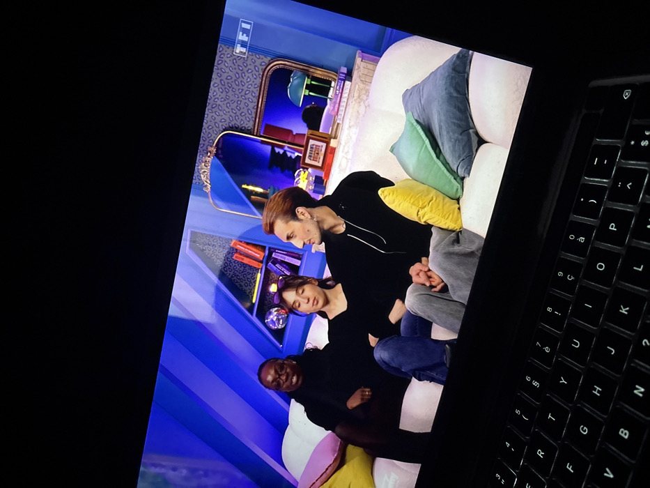 - "The image displays a laptop screen projecting a television program on the French channel TF1, viewed in a darkened room, from Maisons-Alfort, France" by FM-5A5Aq1, licensed under CC BY 4.0