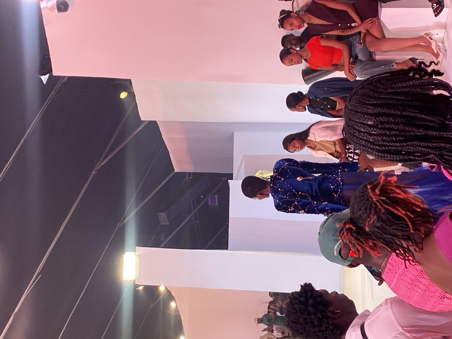 The image captures an indoor event, identified as a fashion show, located in Itirin, Nigeria