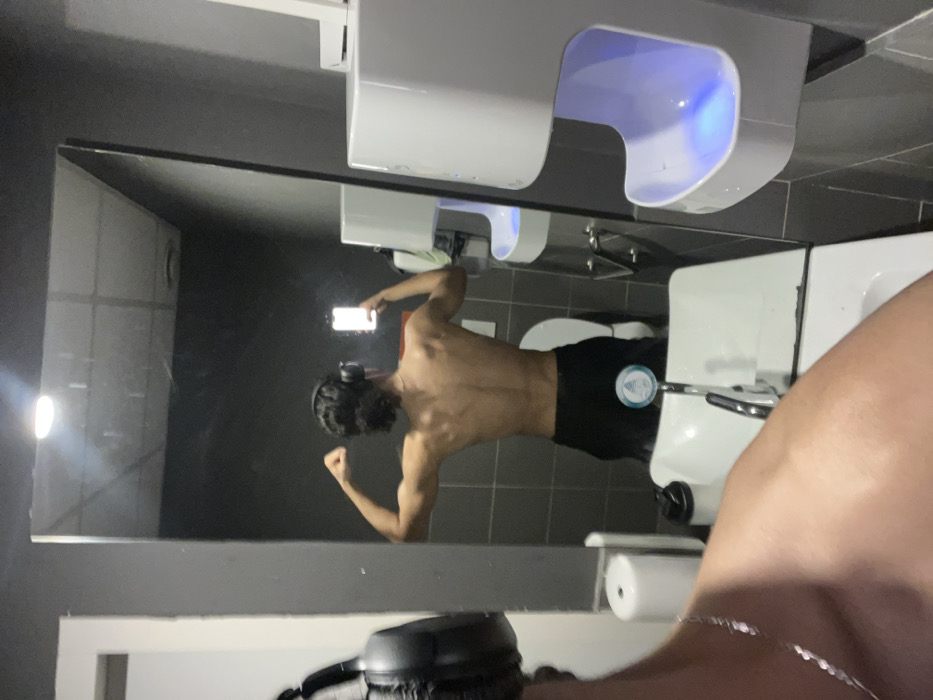 - "The image depicts a male individual taking a mirror selfie in what appears to be a public restroom or changing room, specified as being located in Strasbourg, France" by FM-ebSzB3, licensed under CC BY 4.0