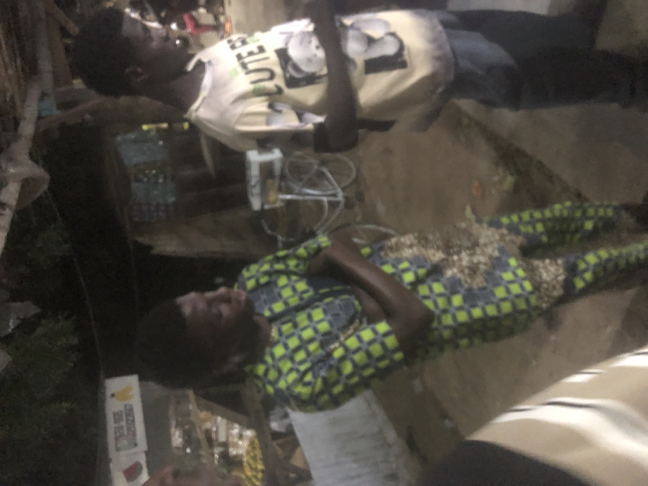 The image depicts an outdoor, low-light street or market scene in Dabawa, Nigeria, at night