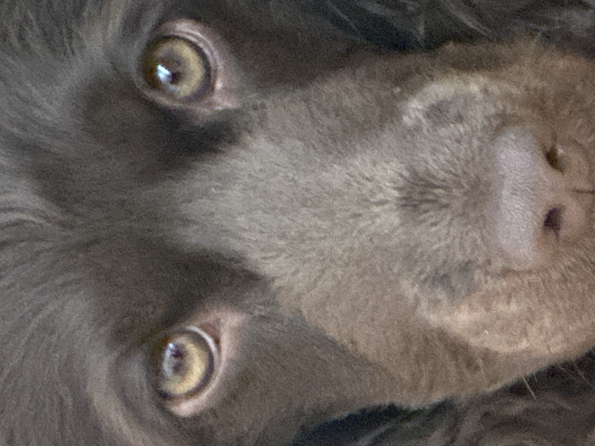 A close-up, slightly angled shot focuses on the face of a brown dog. The dog's two eyes are visible, looking upwards, with yellowish-brown irises. The dog's nose and surrounding muzzle area are prominently featured. The background is out of focus. The image does not provide enough information to discern a location in Wealden, United Kingdom.