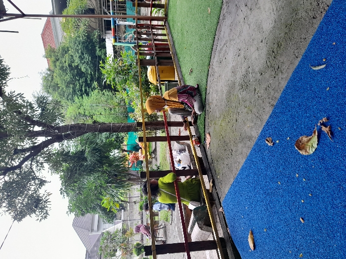 The scene is an outdoor area, likely a playground or park, located in Kecamatan Sidoarjo, Indonesia (latitude: -7