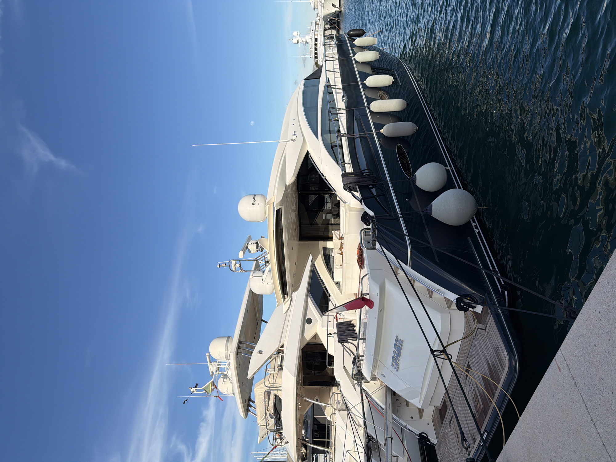 multi-level yacht docked at a marina in Vouliagmeni Municipal Unit, Greece