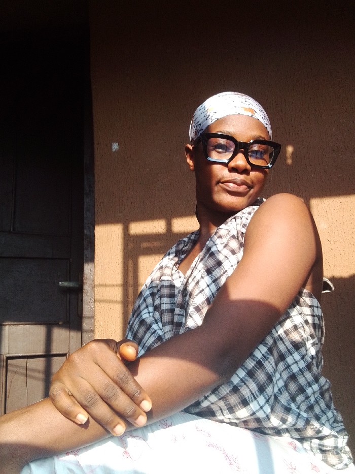 person seated in Onitsha, Nigeria, partially illuminated by direct sunlight