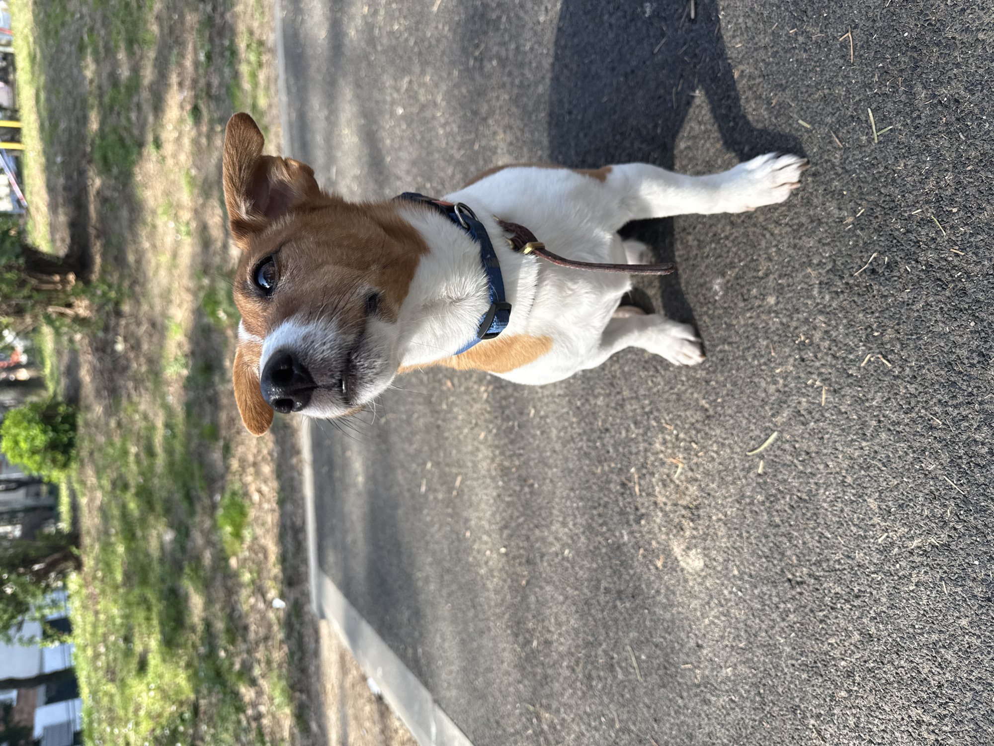 - "A Jack Russell Terrier-type dog is depicted sitting on a dark grey, textured paved surface, likely in a park environment within Palilula Urban Municipality, Serbia" by FM-JiaOh2, licensed under CC BY 4.0