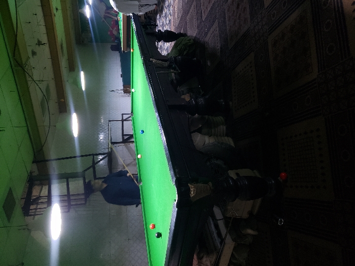 A snooker hall in Kandahar, Afghanistan, is depicted