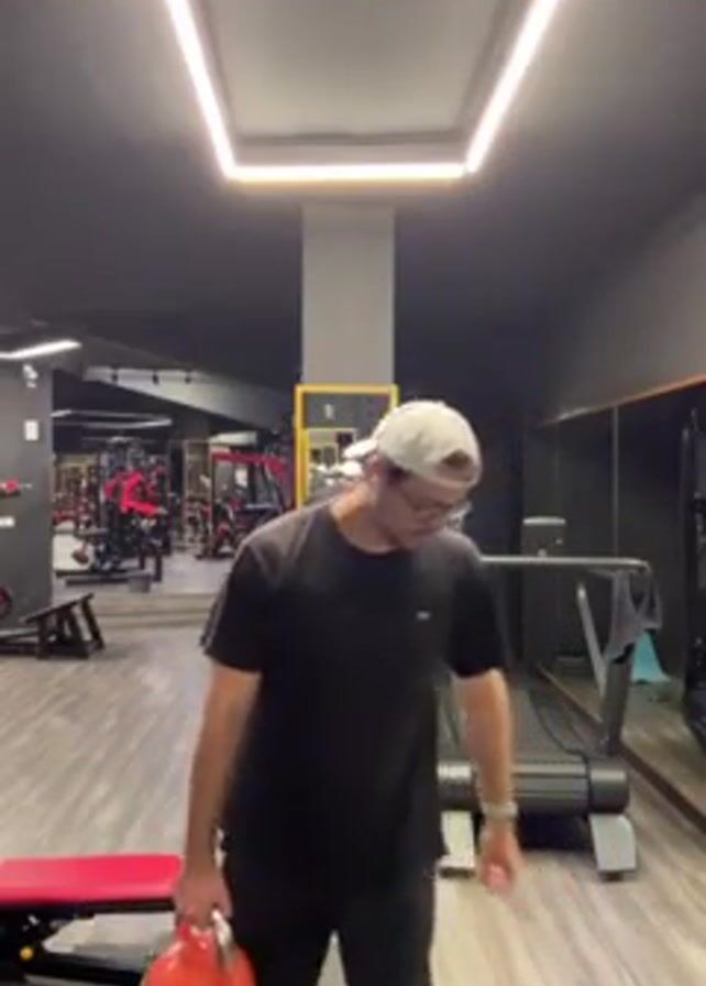 man in a gym lifting a kettlebell