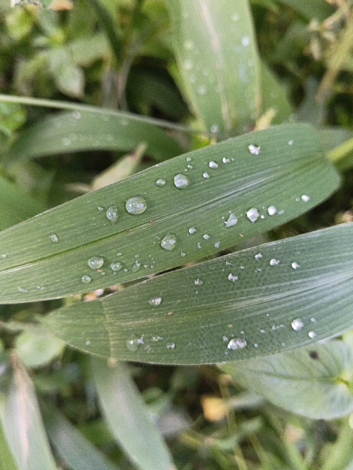 - "Two vibrant green grass blades dominate the frame, adorned with glistening water droplets" by FM-nRndo2, licensed under CC BY 4.0