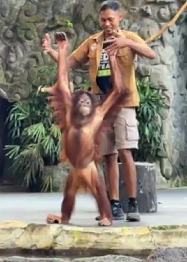 - "man standing behind an orangutan, who is standing on its hind legs" by FM-PcEqo1, licensed under CC BY 4.0