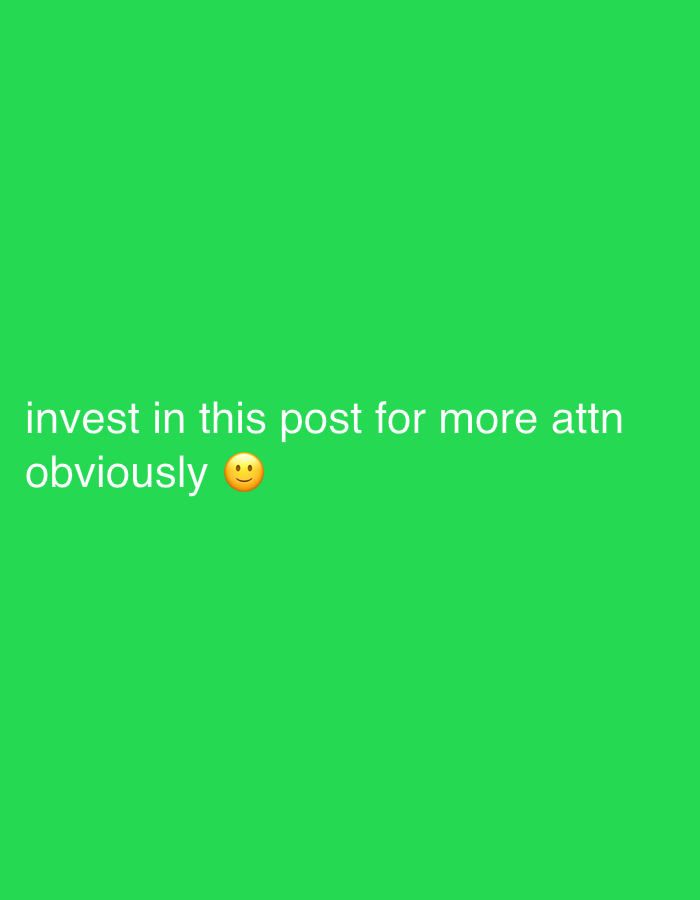 A green background displays the text "invest in this post for more attn obviously :)" in white