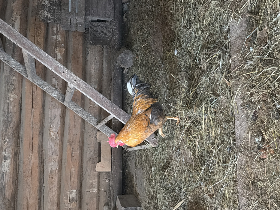 - "An adult male rooster is depicted standing on a floor covered in dry straw and dirt within a log structure in Уром, Russia" by FM-lXTRi1, licensed under CC BY 4.0