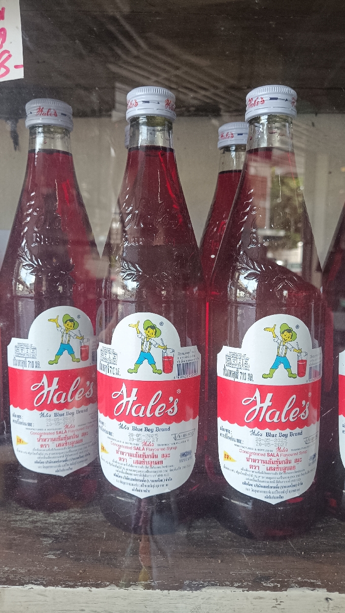 - "The image displays a close-up of four glass bottles of "Hale's Blue Boy Brand Concentrated Sala Flavoured Syrup" arranged on a dark brown wooden shelf" by FM-BdCXB3, licensed under CC BY 4.0