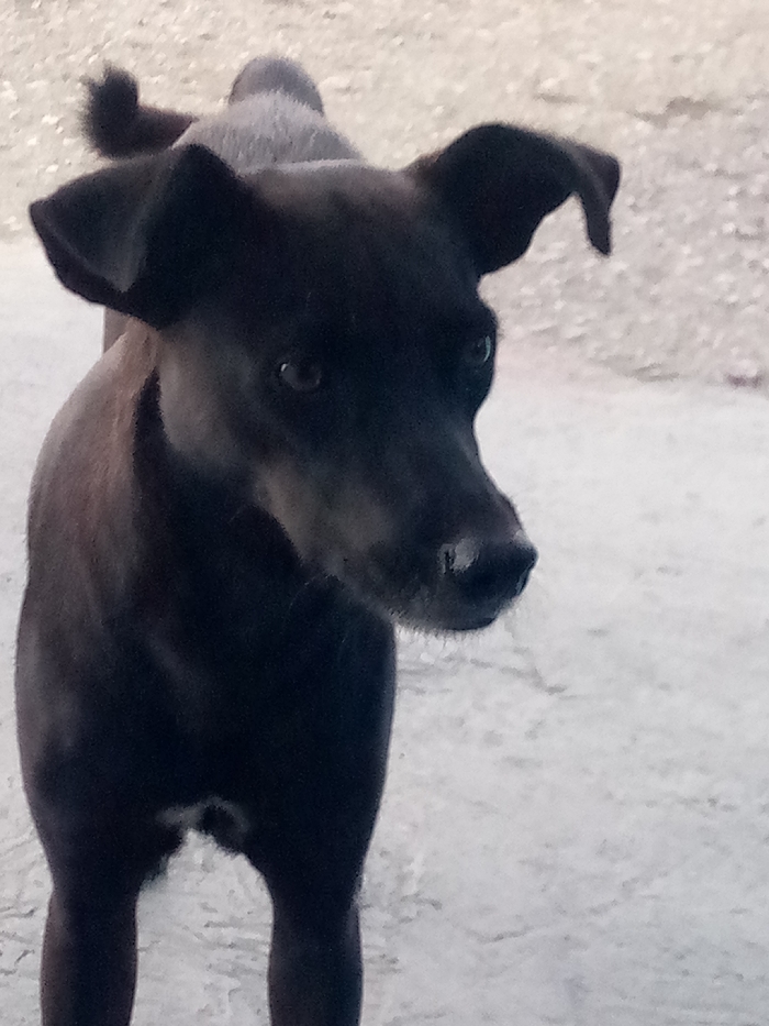 - "A black dog stands facing slightly right, against a light, neutral background" by FM-Q5qB73, licensed under CC BY 4.0