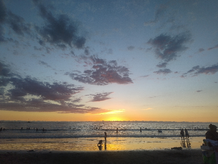 - "A beach scene at sunset features a wide expanse of water reflecting the golden light" by FM-xfxyn2, licensed under CC BY 4.0