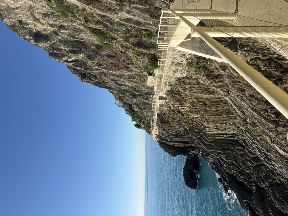 - "The image displays a sunlit coastal pedestrian pathway in Manarola, Italy, traversing a steep, rugged cliff overlooking the Ligurian Sea" by FM-yjK1X2, licensed under CC BY 4.0
